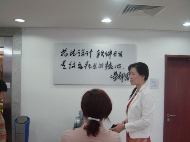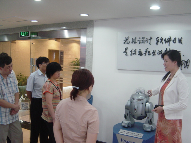 會議地點設在北京中星微電子總部,看。。。。。。門口還擺著歡迎牌。。。。不錯不錯。。。。。中星微的前臺妹妹那么認真地在看什么呢?嘻嘻。。。。 (圖2) 臺電科技和中星微電子代表、以及北京一流渠道商代表在中星微電子北京總部會議室進行三方親切會晤,就三方在今后的市場發展的道路上和新技術應用等多方面戰略合作上,進行深刻地交流。 (圖3) 會后,在中星微電子代表的引領下參觀了中星微電子有限公司。看。。。。。咱們同仁正認真聽講解員妹妹細微動人的解說。。。 (圖4) (圖5) 中星微芯片在機器人上的應用 噢。。。這個是什么東東,,,俺還是第一次看見款設這么奇特的產品。。這個我要認真問清楚解說員妹妹才告訴你們。。。。 (圖6) 秉承商科集團的精神,志存高遠,腳踏實地。 (圖7) 美好的瞬間,靚照的留念。 (圖8)