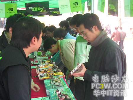 產(chǎn)品展示區(qū)的各款顯示卡吸引了不少過路同學(xué)的眼球,紛紛過來仔細(xì)觀看,并不時(shí)向工作人員咨詢產(chǎn)品細(xì)節(jié)。