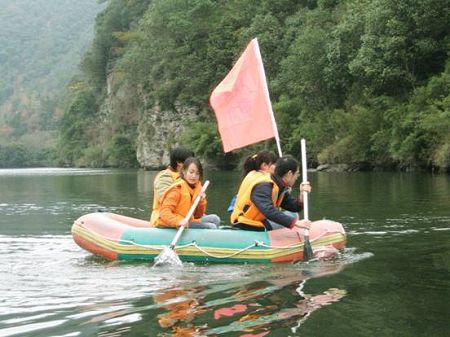“縱橫”隊(duì)奮力的劃著小舟駛向?qū)Π?/SPAN>