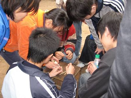 全體隊(duì)員進(jìn)行第一項(xiàng)“人椅”游戲