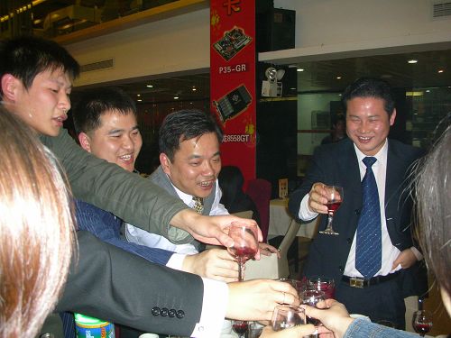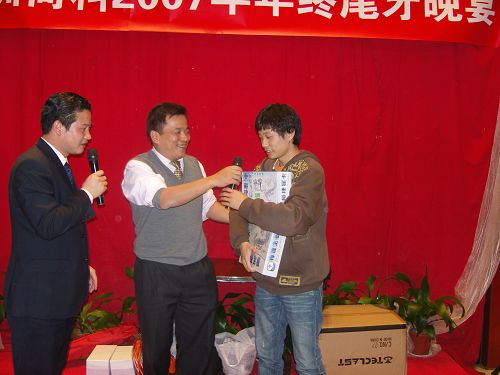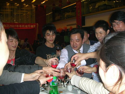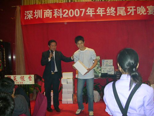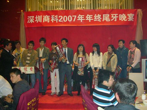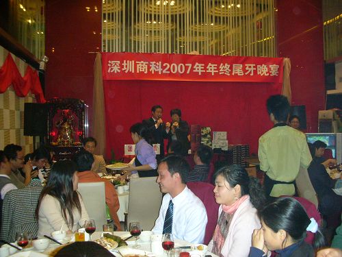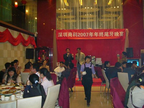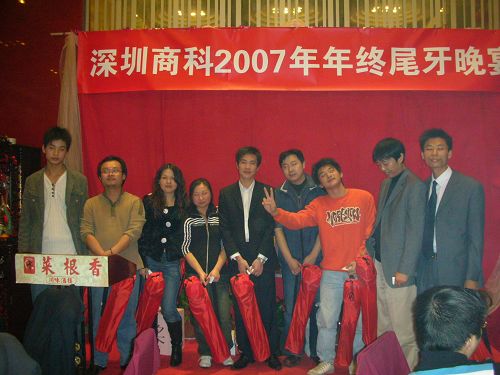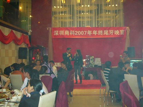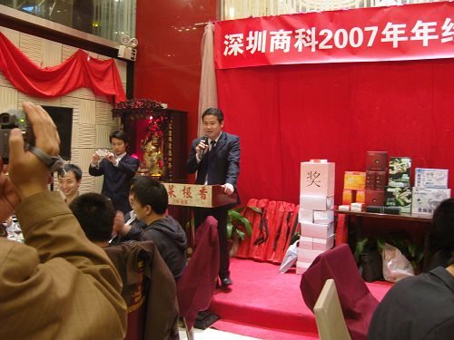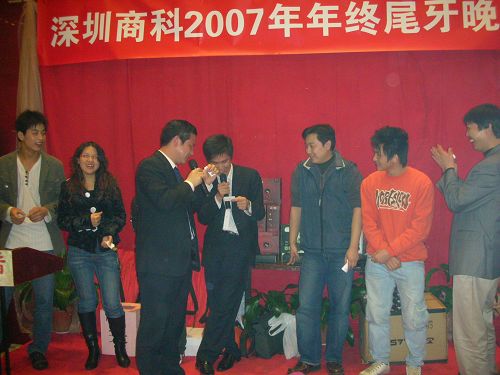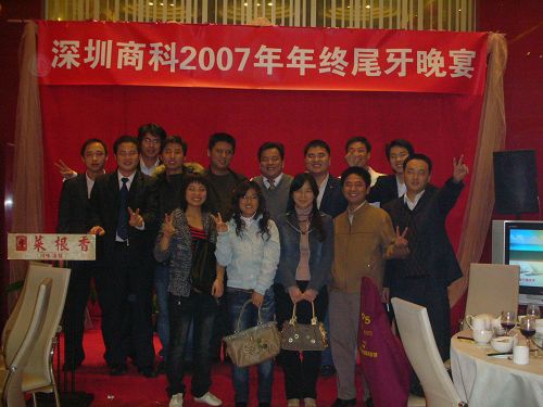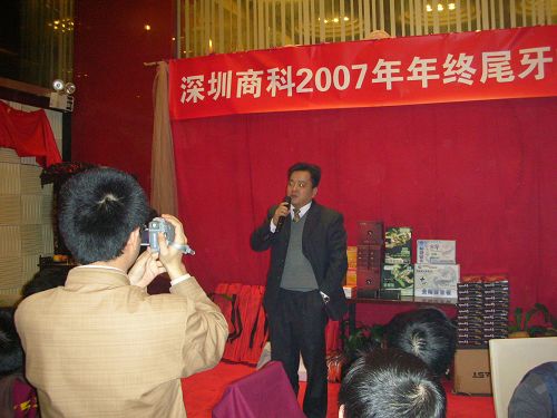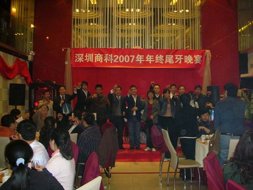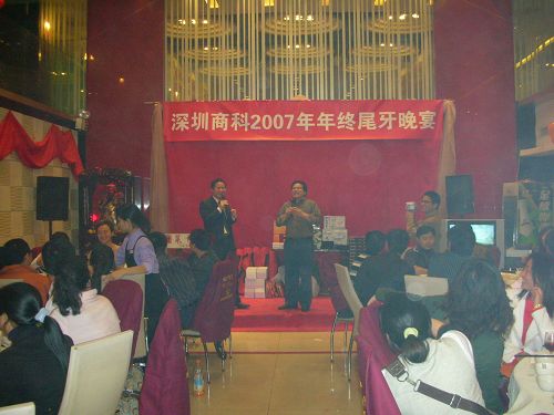 深圳商科為感謝廣大經銷商與媒體朋友.在過去一年里的支持與厚愛,于2008年元月24日在深圳市華發北路菜根香大酒樓舉辦“深圳商科2007年年終尾牙晚宴”,當晚也非常榮幸地請到商科總公司劉總與大家共渡晚宴,同時劉總與深圳分公司經理余軍攜全體員工向廣大經銷商及媒體朋友祝酒。