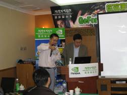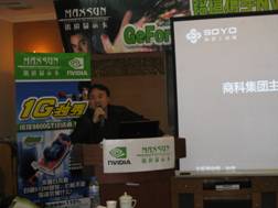 2009年3月10日下午14時(shí),銘瑄攜手NVIDIA GeForce內(nèi)功威力四射全國(guó)經(jīng)銷商培訓(xùn)會(huì)東莞分站部分的會(huì)議正式在東莞篁勝酒店舉行。本次培訓(xùn)會(huì)主要針對(duì)銘瑄的顯卡產(chǎn)品和NVIDIA的高精尖技術(shù)向與會(huì)的經(jīng)銷商代表進(jìn)行講解,幫助經(jīng)銷商樹(shù)立品牌信心,在新年的開(kāi)端也是銷售旺季來(lái)之際,鞏固以往的銷售成果,攜手銘瑄共創(chuàng)輝煌。同時(shí)我們還邀請(qǐng)來(lái)了NV方面的代表,為大家講解了NV的專業(yè)顯卡Quadro和NV的CUDA技術(shù)以及物理加速技術(shù)。