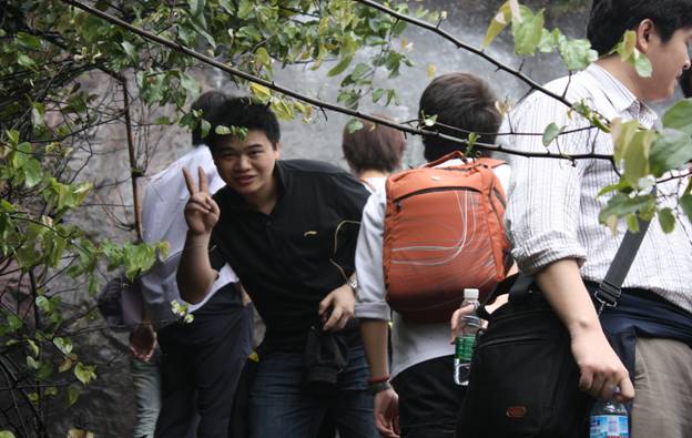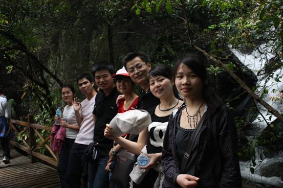 經(jīng)過一番跋山涉水,大家終于爬到了白水寨的9999級(最高點(diǎn)哦!),大家撐起笑臉留下值得驕傲的表情。大家看看大汗淋漓、筋疲力盡的我們,是不是都很棒!(掌聲ING)