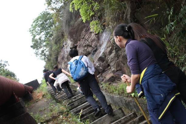 蜿蜒的山路,濕潤的石板,大家小心翼翼的爬著山路。