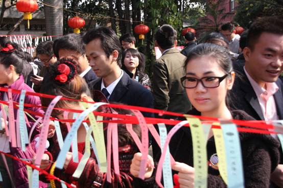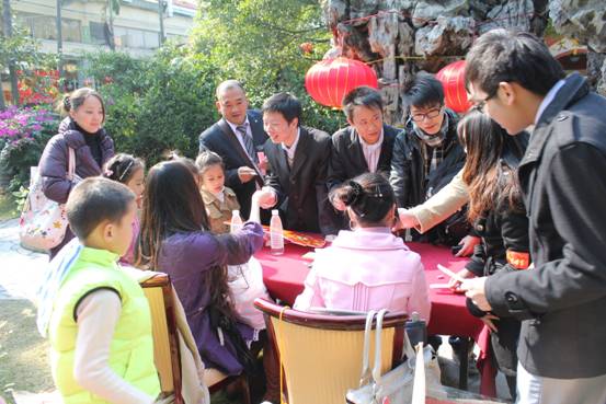 整個會場內外都布置的很漂亮,花園里掛著許多燈謎,答對燈謎的人就可以領到小禮品,大家紛紛開動腦筋絞盡腦汁,場面十分熱鬧。