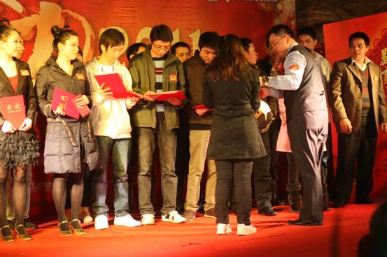 燈謎兌獎處 進行曲之一:玉兔迎春春入戶 之表彰大會。這一部分主要是表彰2010年中工作認真,表現良好,取得了優異成績的員工們,部分勤奮敬業的員工獲得了這一殊榮。