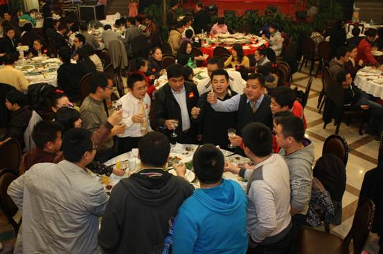 進行曲之三:玉兔呈祥家家樂 之豐盛晚宴。看完精彩的表演,大家也有些餓了,于是迫不及待的進入第三部分—用餐。豐盛的晚餐讓大家都吃的很開心,席間,大家談笑風生,暢談這一年來的感受,對過去的總結以及對未來的展望。