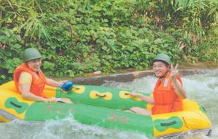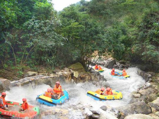 漂流河道設計者,巧奪天工,河道順山勢無盡曲折旋回,漂流舟高高躍起,左右回旋,扎入水中,又高高躍起,又高低回旋扎入水中……讓漂流者充分享受竄上云霄,極速墜地的刺激有驚無大險!不過感覺最爽最刺激還是中游處的黑隧道電閃漂!