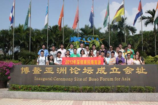 博鰲,這個(gè)地方就是每年開亞洲經(jīng)濟(jì)論壇的一個(gè)場所,我們?nèi)w人員在博鰲亞洲論壇會址前來了一張集體大合影;