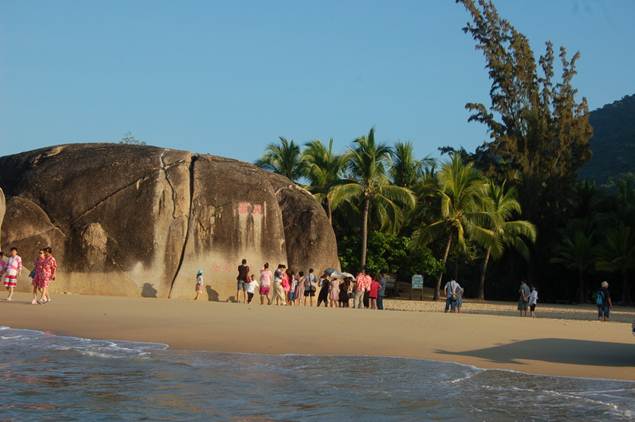 在兒時(shí)的印象中,海南是個(gè)繁華的小島,有著獨(dú)特的熱帶景觀與島嶼風(fēng)光,“細(xì)白的沙灘,茅草的遮陽棚,翠綠的椰樹。。!睉阎环葶裤,一份好奇,10月18日凌晨,我們深圳商科一行27人從上海賓館出發(fā),踏上了海南的游程,去感受海南的椰風(fēng)。海韻與民俗;