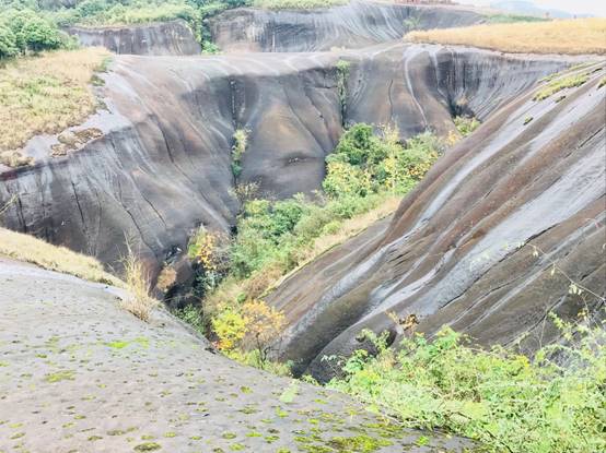午飯后來到今天的第二個景點“飛天山”。飛天山為丹霞地貌,大旅行家徐霞客曾贊嘆飛天山“無寸土不麗,無一山不奇”,并鐫刻“寸土佳麗”。境區(qū)山頂相連,溝壑縱橫,精巧處如精雕細琢,巧奪天工,宏偉處如橫空出世,壯志凌云。