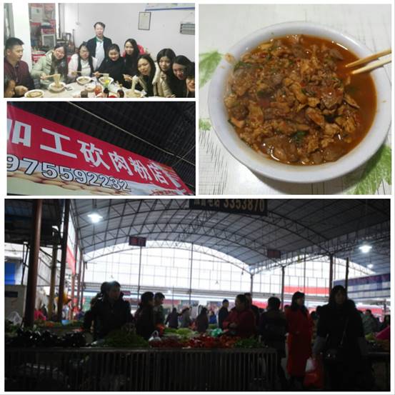 昨晚小伙伴們就相約好今早一起去品嘗資興特色美食---砍肉粉。要先到農(nóng)貿(mào)市場去選肉,然后拿到粉店加工,做出來的砍肉粉才最新鮮、美味。