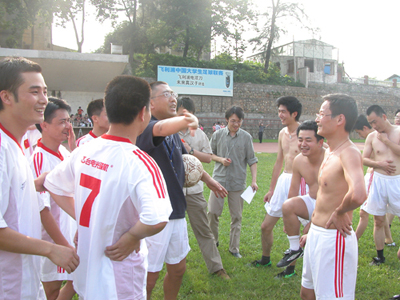 雙方隊(duì)員賽前友好握手,隊(duì)長(zhǎng)準(zhǔn)備交換禮物