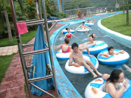 這個項目是一個由七七四十九轉而做成了一個小河,人坐在水圈上面,隨波慢慢的瓢流,人生美哉。大家在上面可以跟一些相識的或不相識的人一起潑水或者是玩鬧,非常的不錯。