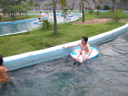 在這個項目中,大概隔半個小時左右就會有大概十分鐘左右的人工浪,在中心地帶,浪高大概有1米有余,雖然不能像傳說中的那樣,可以劃板沖浪,但是坐在水圈上隨波逐流也是一翻非常舒服的顯示,在這個過程中,通常大家會和一些認識的和不認識的一起在中心處一起鬧哄,其樂融融,非常的不錯。