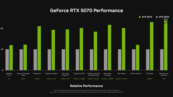 銘瑄GeForce RTX 5070 iCraft OC12G 璦珈顯卡,搭載NVIDIA全新Blackwell 架構,配合 DLSS 4 多幀生成技術,實現了性能與畫質的雙重飛躍。數據顯示,相較 RTX 3070,其最高性能可提升3 倍,綜合性能提升達70%,對于仍在使用 RTX 3070 的玩家來說,是現階段更具性價比的升級選擇。無論是復雜場景的光影計算,還是海量多邊形模型的實時渲染,都能輕松駕馭。借助 DLSS 4 多幀生成技術,玩家在開啟光線追蹤后,讓玩家在穿梭夜之城的街巷時,既能看清霓虹燈管的每一處細節,又能在激烈的槍戰中精準瞄準,徹底告別畫面卡頓帶來的操作延遲。