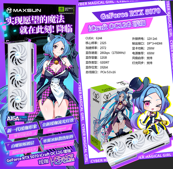 《賽博朋克2077》的五周年是新故事的開端,年末的硬件煥新則是體驗升級的基石。銘瑄GeForce RTX 5070 iCraft OC12G 璦珈顯卡,無論是應對游戲的高規格畫面需求,還是發揮各項 NVIDIA 技術的潛力,都能輕松勝任。這個年末,就讓這款顯卡為你的游戲裝備注入全新活力,在賽博世界的霓虹中暢享強悍體驗吧!