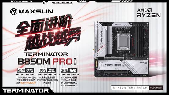 在此推薦兩款高度適配歲末煥機需求的優質之選——銘瑄Terminator B850M PRO WIFI和Terminator B850M PRO DARK WIFI主板。這兩款主板不僅能完美搭配AMD銳龍7 9800X3D處理器,釋放處理器的強勁性能,更以一黑一白的個性設計,滿足不同玩家的主機打造需求,讓你的元旦假期游戲體驗全面升級,戰力飆升!